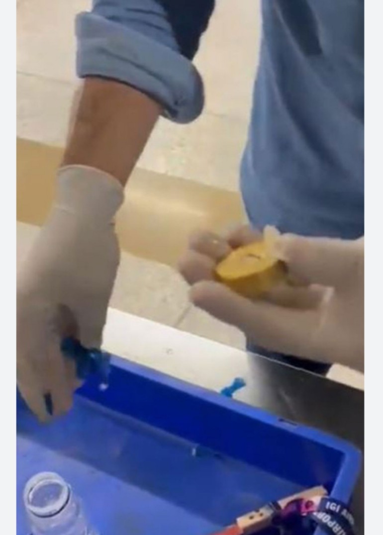 During X-ray screening of his luggage, officials detected suspicious images and carried out a detailed examination. A round piece of gold weighing 170 grams was found concealed beneath the lid of a plastic bottle.