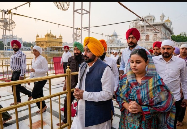 Mann, who was accompanied by his wife Dr Gurpreet Kaur, told reporters that he prayed for peace, progress and harmony in Punjab while offering prayers at the Golden Temple.