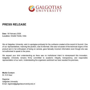 Galgotias University said there was no institutional intent to misrepresent the innovation and reiterated its commitment to academic integrity, transparency and responsible representation of its work. The university added that it has vacated the premises in line with the organisers’ sentiment following the controversy.