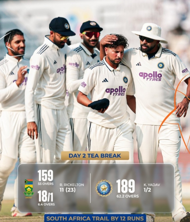 In reply, South Africa reached 25 for 2 in their second innings, with Wiaan Mulder and Temba Bavuma at the crease. Aiden Markram was dismissed for 4 runs.