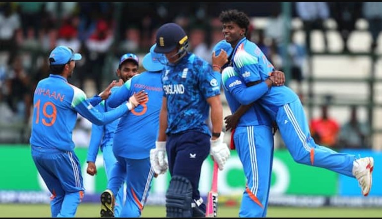 Chasing a daunting target of 412, England were bowled out for 311 in 40.2 overs. Caleb Faulkner fought hard with a blistering 115 off 67 balls, but his effort was not enough to keep England in the contest. R S Ambrish led India’s bowling attack with three wickets, while Deepesh Devendran and Kanishk Chauhan claimed two wickets apiece.