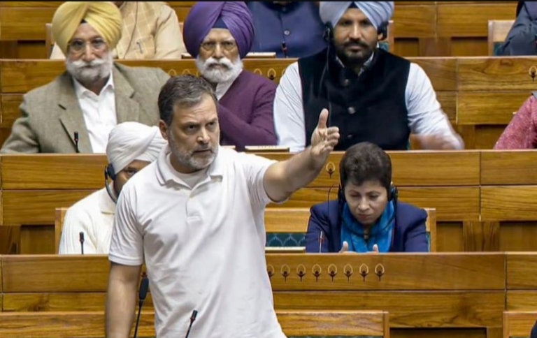 New Delhi: The Lok Sabha witnessed heavy disruptions on Monday during the debate on the motion of thanks to the President’s Address after Leader of the Opposition Rahul Gandhi began referring to an unpublished memoir of former Army chief M.M. Naravane while speaking on the 2020 border standoff with China. BJP members strongly objected to the reference, leading to repeated interruptions.