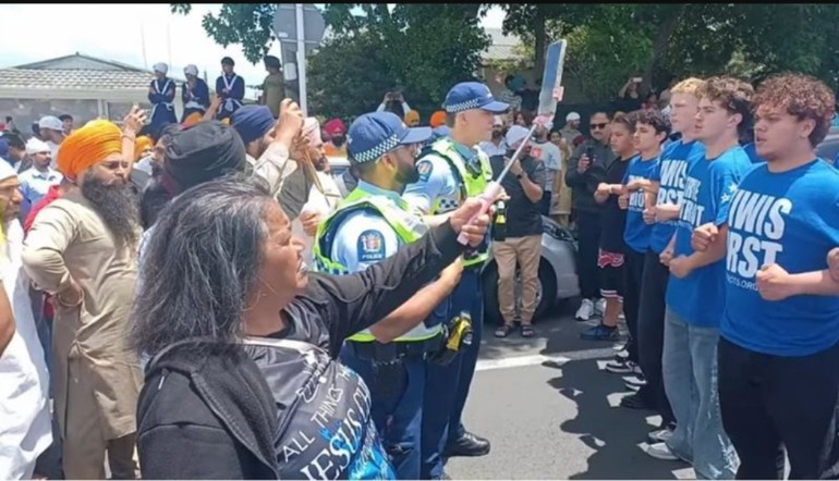 Auckland: In New Zealand, a Sikh Nagar Kirtan faced protests from local residents linked to a church, though the procession was not stopped. During the demonstration, some protesters performed the haka dance on the streets and questioned who had authorized the procession and why swords were being carried. They also opposed the display of Sikh symbols and flags and shouted slogans against the Sikh community.