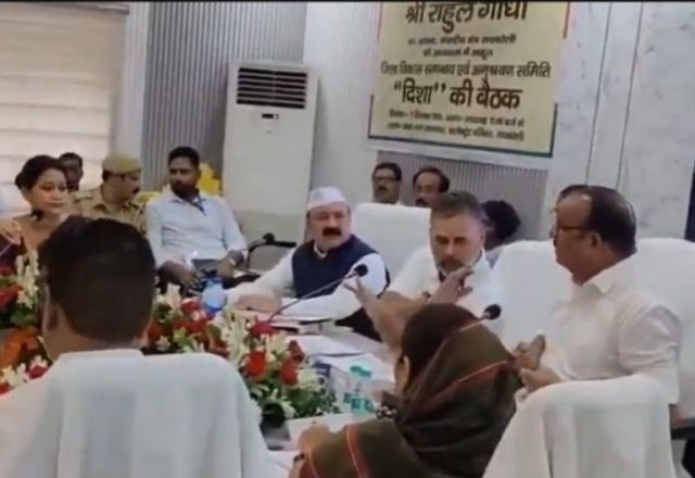The argument took place during a meeting of the District Development Coordination and Monitoring Committee (DISHA). Amethi MP and DISHA co-chairperson Kishori Lal Sharma, along with several MLAs and block heads, were present at the meeting.