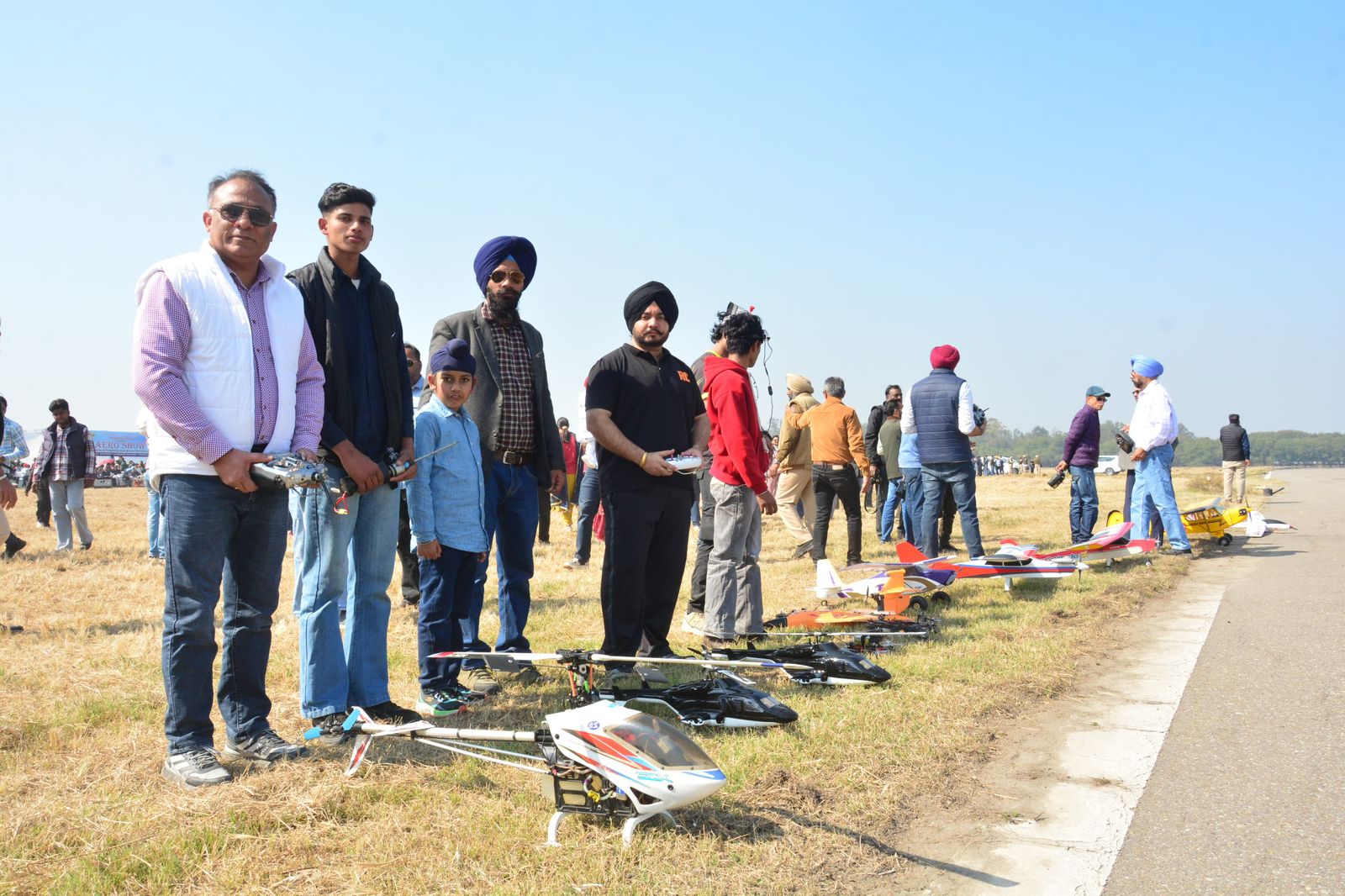 During the Aero Modelling Show, Captain S.S. Hara of Fairwind Aviation Ludhiana performed a leaflet drop while showcasing the capabilities of the Cessna-206 aircraft. Shivraj Singh Dimpy Ghuman, President of the Aero Modelling Club Patiala, demonstrated loop, roll, spin and wingover maneuvers using a Piper Cub with an 88-inch wingspan, while his grandson Mankaran Singh flew a Tundra Cub and displayed similar feats. Naminder Singh Bhogal from Ludhiana flew a Boom Ring, Er. Harsimran Singh Harry demonstrated a Clamato model, and Karan Singla flew an X8 along with four drone models. Twelve-year-old Subheg Singh from Ludhiana impressed the audience with his three-in-one sky surfer and helicopter demonstration. Other participants included Manish Kumar from Chandigarh with a Dancer Glider, Gaurav with a Picker model, Manreet Singh with an MFS Jet, Tanik from Ludhiana with an Acro RC, Supreet Singh with a Sky Surfer, Birinder Singh with a helicopter model and Jagdeep Kapil from Karnal, who flew an engine-powered helicopter.
