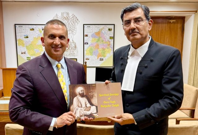 The book , “Spiritual Journey of Sri Guru Tegh Bahadur Sahib”, reflects an inspiring visual narrative of the Guru’s travels, spiritual teachings, and supreme martyrdom. Through an artistic blend of photographs and brief historical insights, the book aims to evoke reverence towards the Guru’s message of universal brotherhood, compassion, and religious freedom. The author, Harpreet Sandhu, has meticulously captured the essence of these holy sites, creating a visual pilgrimage for the readers while promoting awareness about Sikh heritage and history. a set of books were also presented for the library of Judges of High Court as a tribute to the ninth Sikh Guru sahib ‘s supreme sacrifice for the nation .