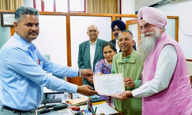 Punjab E News (Pawan Dhupar):Â Punjab Vidhan Sabha Secretary cum Returning officer Shri. Ram Lok Khatana today handed over the certificate of Election to Punjab Rajya Sabha candidate Shri. Rajinder Gupta who was elected unopposed to the upper House of Parliament. This certificate was given to him in the presence of Punjab Vidhan Sabha Speaker S. Kultar Singh Sandhwan. Sh. Rajinder Gupta was accompanied by his wife Madhu Gupta.