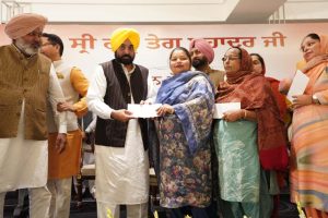 Dhuri (Sangrur News): Under the initiatives dedicated to the 350th martyrdom anniversary of the Ninth Guru, Sri Guru Tegh Bahadur Ji, Punjab Chief Minister Bhagwant Singh Mann on Thursday distributed cheques worth Rs 71 crore for the development of 142 villages and towns in the state that were sanctified by the Guru’s divine presence.