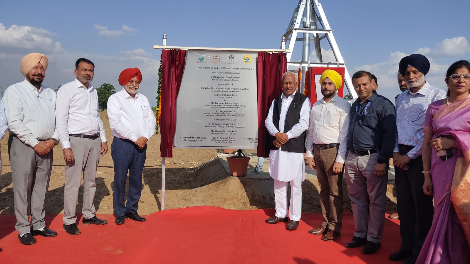 Chief Conservator of Soils, Mohinder Singh Saini provided technical details of the NABARD-assisted project. He explained that inverted sprinkler systems are mounted on a 60-metre-long arm that revolves around a central pivot point, irrigating a 3-acre circular area without any manual labour. He added that the system significantly improves water use efficiency, enhances crop yields, and will act as a model for modern irrigation practices across the state.