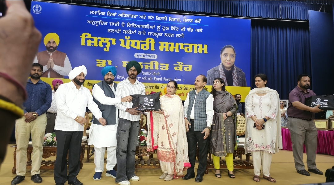 Chairing a Tool Kit Distribution and Awareness Programme at Kalkat Bhawan in Mohali covering six districts, Minister Dr Baljit Kaur highlighted the scale of educational progress under the present government and said, “Punjab has secured the second position at the national level in the disbursement of scholarships aimed at promoting education among Scheduled Caste and other students. Nearly 10 lakh students have pursued education in their desired fields during the tenure of the Bhagwant Mann government.”