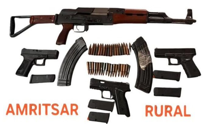 अमृतसर पुलिस सीमा पार से हथियारों और ड्रग्स की तस्करी को रोकने के लिए लगातार अभियान चला रही है। इसी कड़ी में पुलिस ने आईएसआई प्रायोजित आतंक और सीमा पार हथियार तस्करी के नेटवर्क से जुड़े दो आरोपियों को दबोच लिया है। पुलिस ने आरोपियों के कब्जे से एक एके-47 राइफल, दो मैगजीन और 36 जिंदा कारतूस के साथ-साथ तीन आधुनिक ग्लॉक 9एमएम पिस्तौल बरामद की हैं।