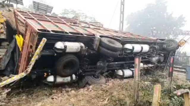 Jalandhar में कोहरे की वजह से हुआ सड़क हादसा, रेलवे लाइन के पास पलटा ट्रक