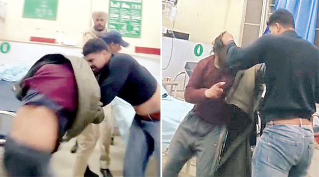 लोगों ने पुलिस व डॉक्टरों की मौजूदगी में ही उसे पीटना शुरू कर दिया।